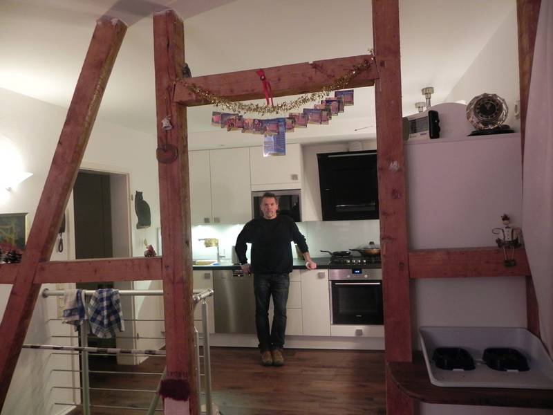 Da das denkmalgeschützte Haus an der Außenwand nicht gedämmt werden darf, müssen die Dittrichs von innen dämmen: 6cm dicke Hanfplatten (8,50 €/qm) verstecken sich nun unter den Tapeten und sorgen für eine angenehme Raumtemperatur. Die Hanfplatten sind relativ dünn, aber effektiv: Die ersten Zentimeter einer Dämmung sind immer die wichtigsten. Um eine doppelte Dämmwirkung zu erreichen, muss etwa viermal so dick gedämmt werden. Das rechnet sich bei sehr alten Häusern energetisch nur selten, außerdem macht es die Räume merklich kleiner. Vorher war vor allem der untere Wohnbereich im Winter fast unbewohnbar: Die Wände strahlten enorm viel Kälte ab, selbst mit einer Wolldecke war es nicht gemütlich. Das ist – Hanf sei Dank – jetzt passé.