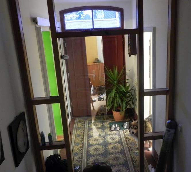 Für die große Haus-Doppeltür musste die Familie zwar satte 6000 € ausgeben. Dafür sieht der Eingang jetzt wunderbar imposant aus, ist extra-schalldicht und schützt auf Passivhausniveau gegen Wärmeverlust. „Dadurch haben wir quasi einen größeren Raum geschaffen“, erzählt Dittrich stolz: Zwischen den beiden Erdgeschoss-Räumen lag früher der kalte und lärmige Hausflur, die Verbindungstüren mussten immer geschlossen bleiben. „Jetzt kann man die schönen alten Bodenfliesen im Flur immer sehen“, freut sich Dittrich.